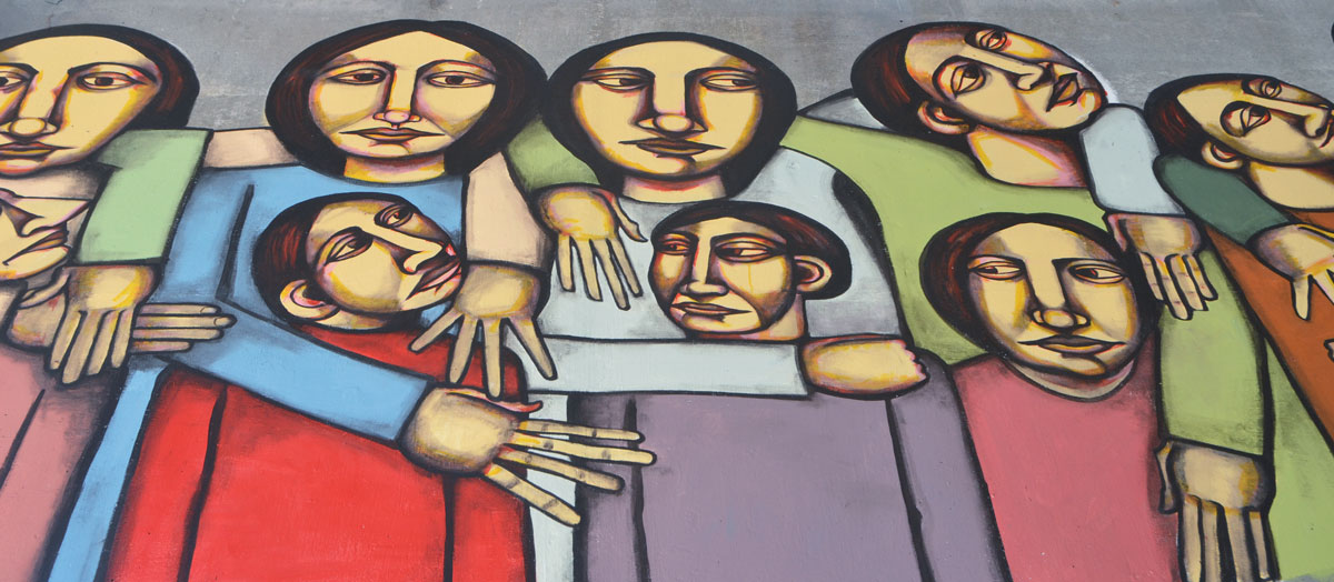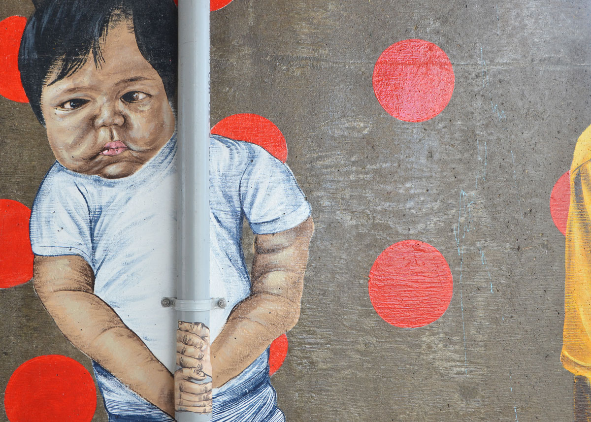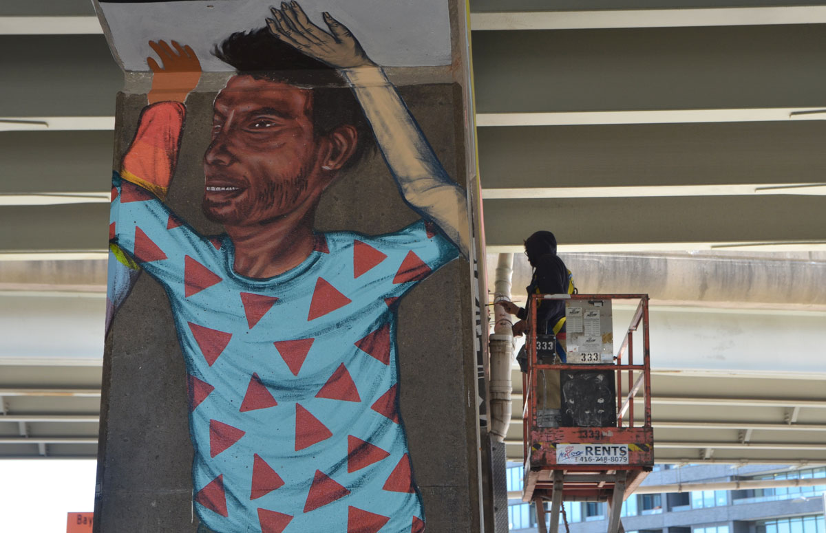 Street artists Troy Lovegates and Labrona are in the midst of painting 16 portraits of 16 east end residents – one on each face of four pillars that help support the Eastern/Adelaide/Richmond overpass.