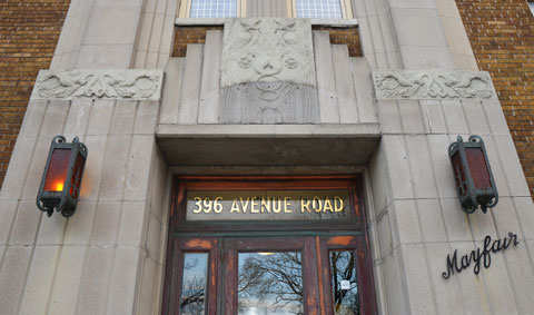 entrance to the mayfair apartments. 396 Avenue Road, stone work and old light fixtures