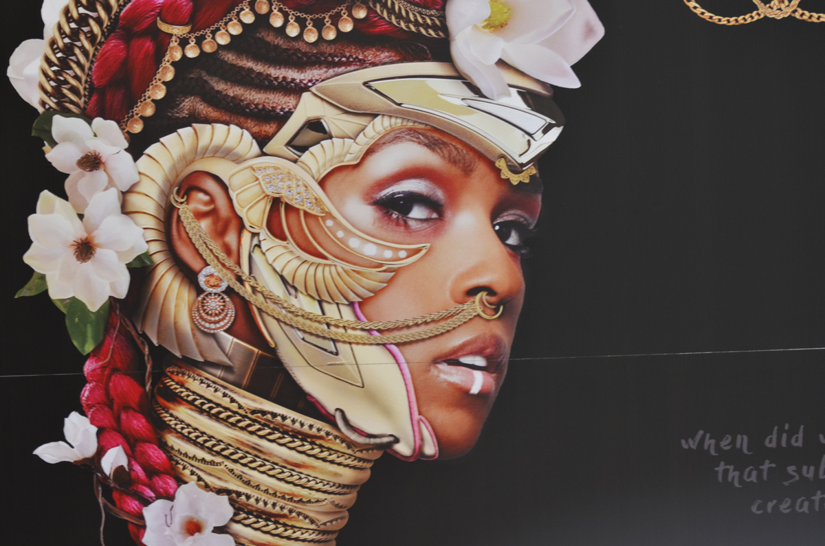 below: A section of a picture on display at Union Station. It is part of an exhibit called “A Thousand Paths Home” and is the work of Torontonian Yung Yemi aka Adeyemi Adegbesan aka SoTeeOh. A write up of his work appeared in Afropunk.