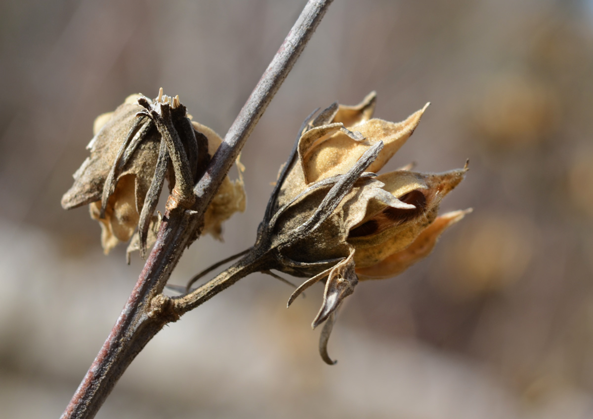 below: Dead and dried, seed pods that opened long ago.