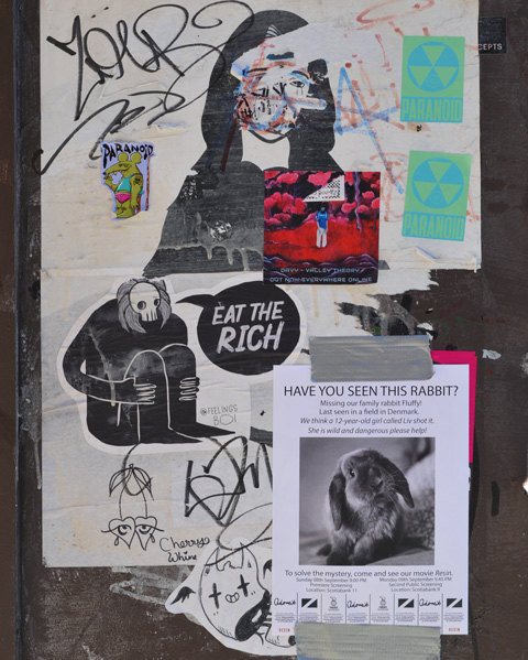 below: Contributions from Paranoid, Cherry Whine, and feelings boi. This is the oldest photo in this post; it dates back to TIFF in September. The rabbit poster was a promotion for one of the TIFF movies, Resin.