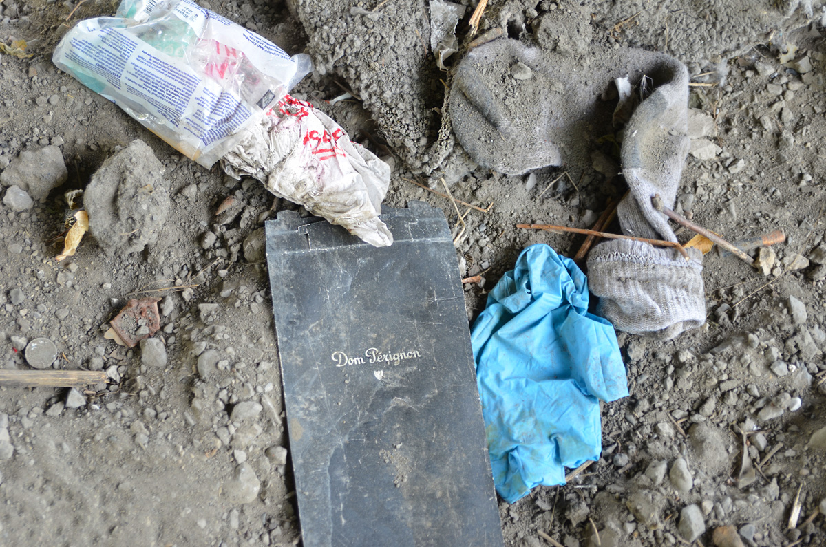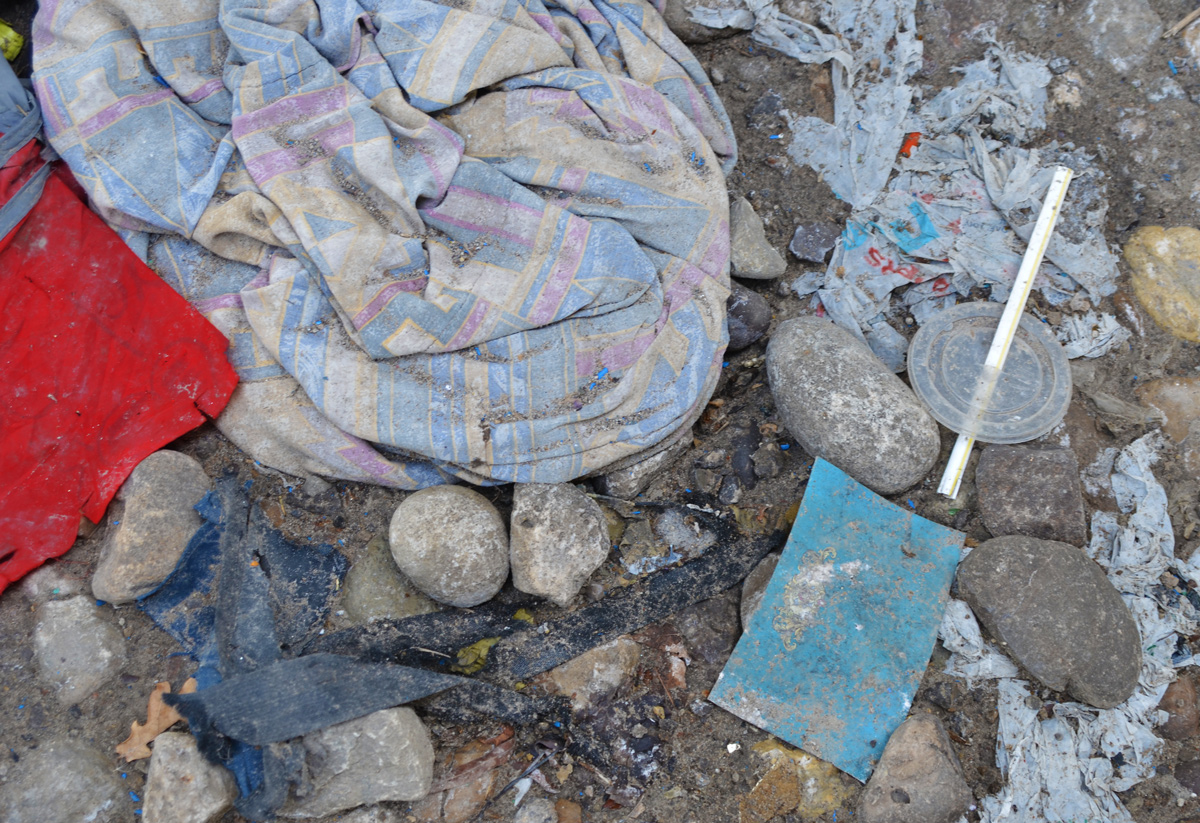 While walking under the Gardiner Expressway a few days ago, I came across the debris left behind by those who once camped here. Or maybe it was trash that was thrown here.