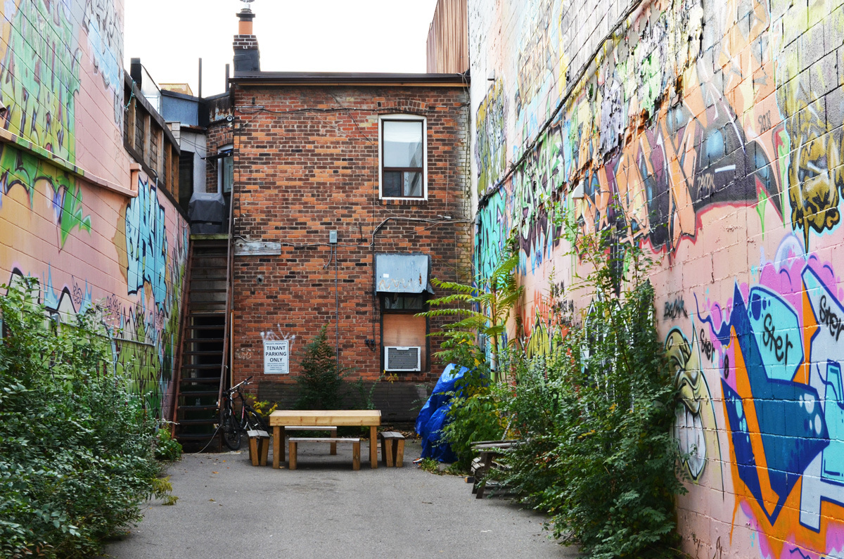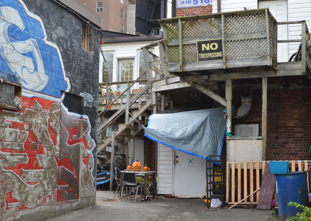 This blog post is a result of a walk down the alley behind Bloor Street West between Dundas West and Keele where the lane runs between the back of the stores and buildings on Bloor and the subway tracks.Ā Some of the street art in this lane can be seen from the subway and some of it I have shown in the past.Ā Ā Whether it’s because of Covid or because I was lucky that day, there were very few cars parked in the lane.