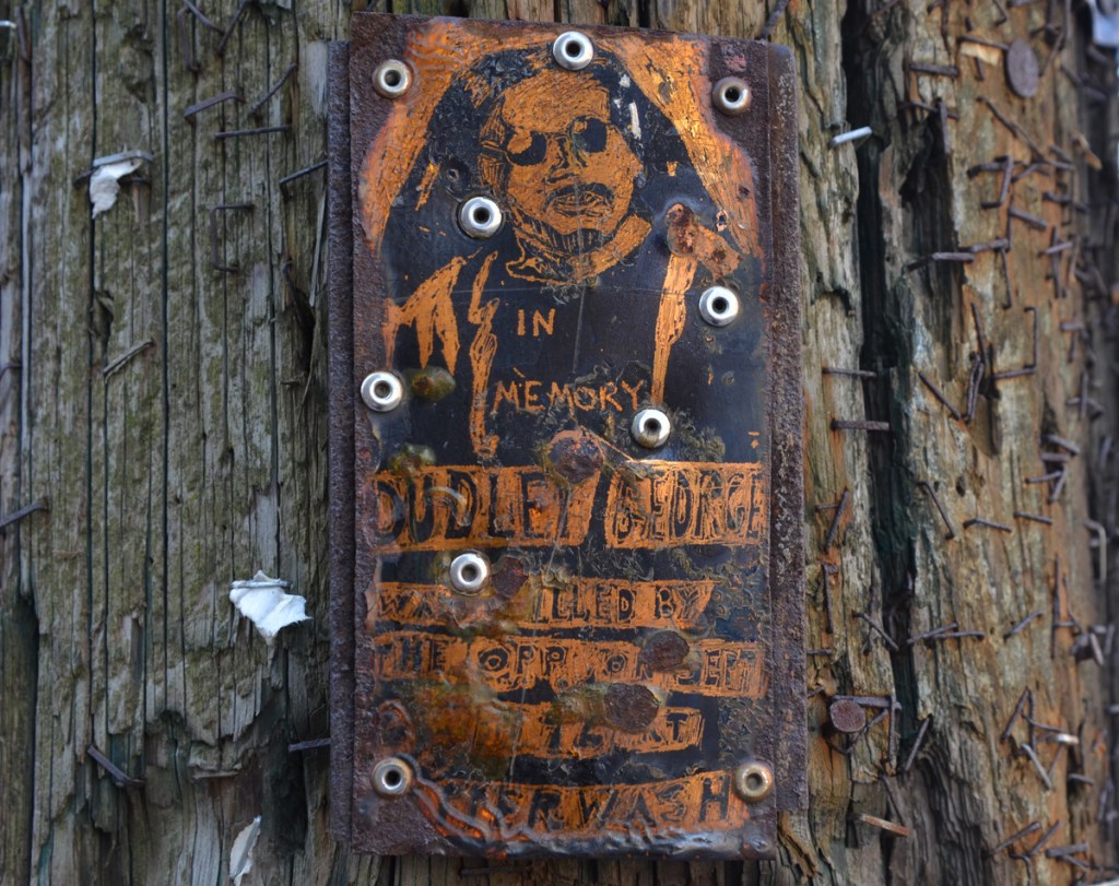 below: In memory of Dudley George who died at Ipperwash, shot by the OPP. I’m not sure if it was intentional or not, but the screws resemble bullet holes.
