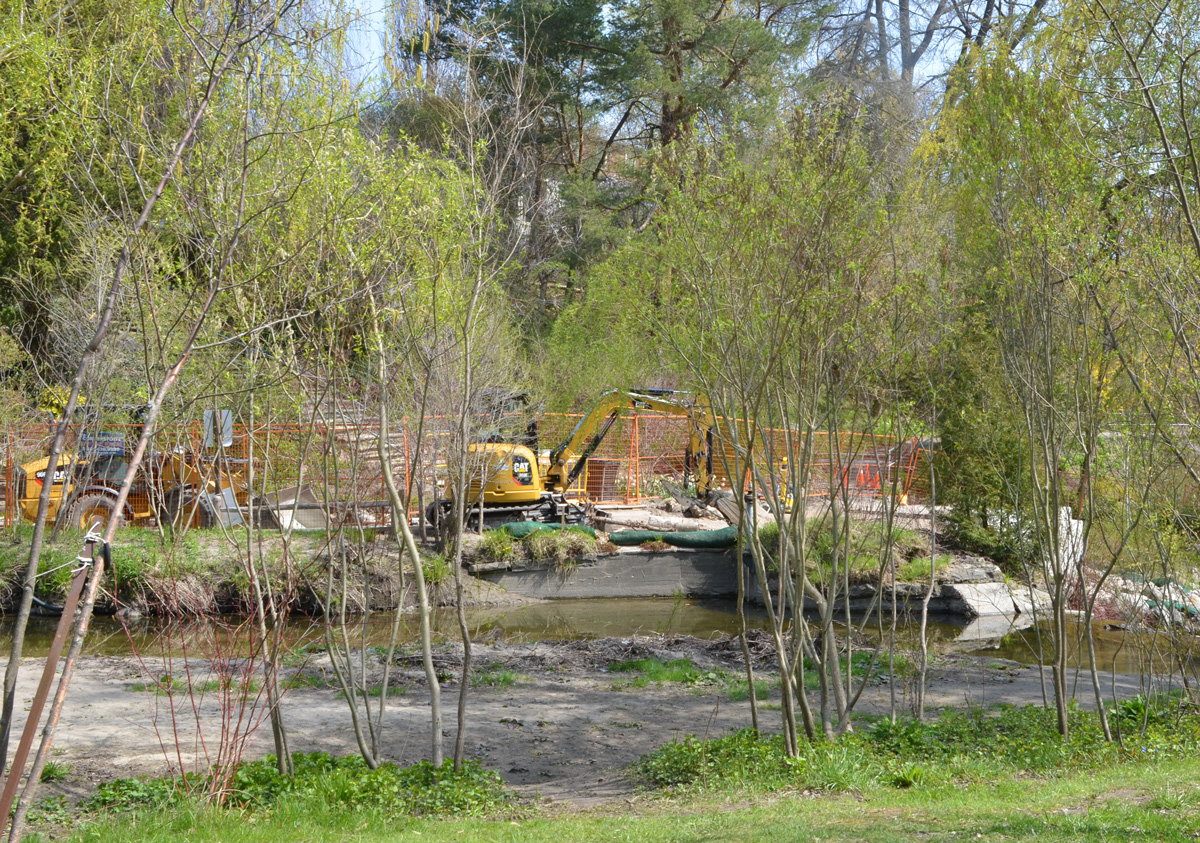 below: Parts of the gardens were closed for repairs to the banks of the creek and the path alongside it.