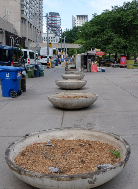 below: Empty planters. Ugliness on Queen Street, right in front of Nathan Phillips Square and City Hall. Neglectful. Toronto can build it but Toronto can’t maintain it.