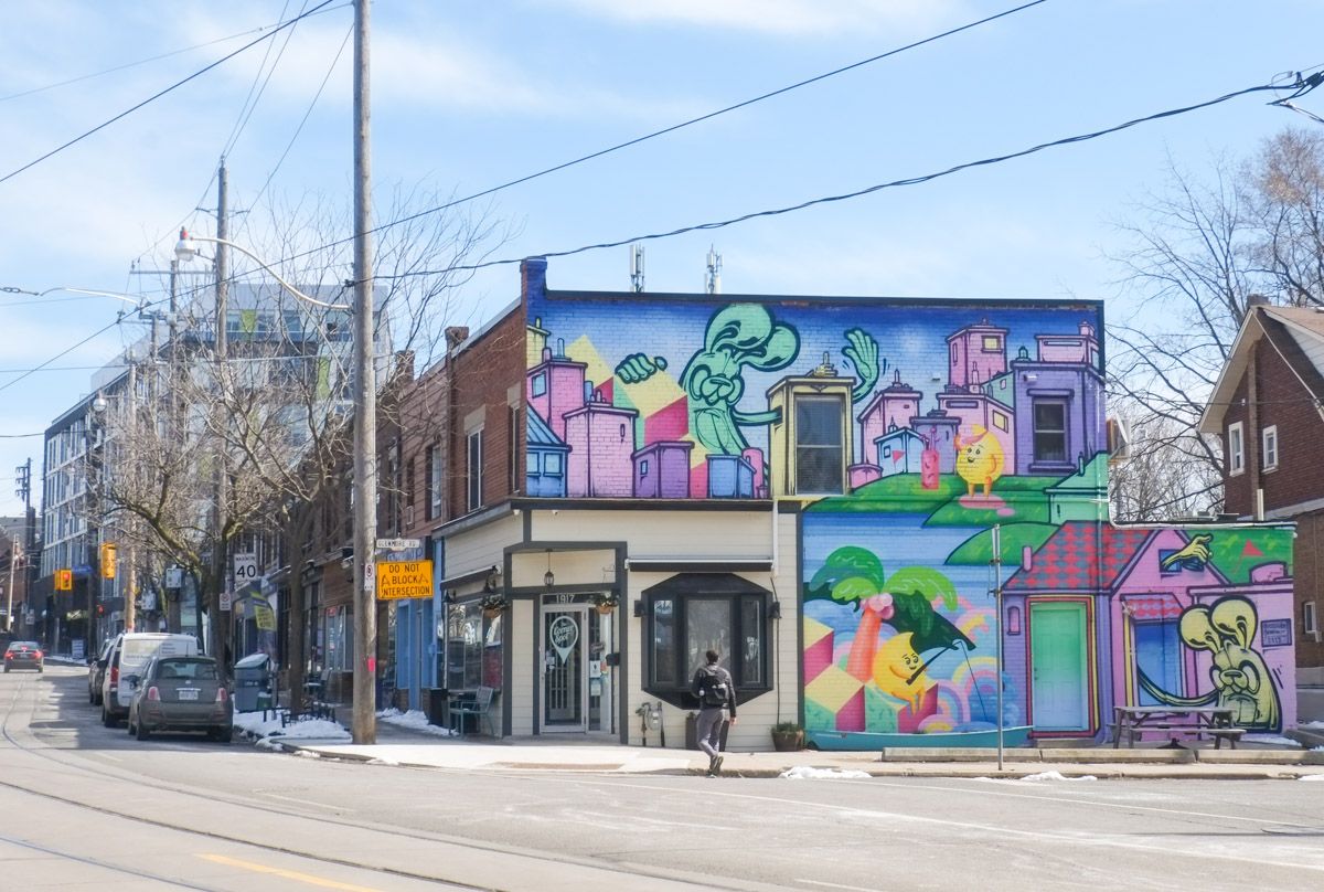 below: Another Mediah mural, on the railway underpass on Woodbine just south of Danforth