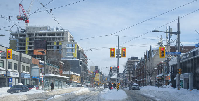 below: Looking east on St. Clair West at Oakwood.