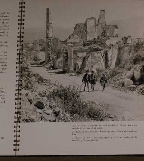 below: “Millions of children first knew life amid death and destruction.”