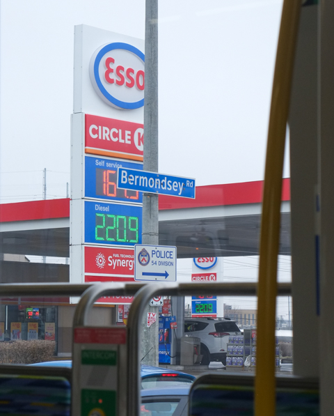 below: Eglinton at Midland, looking northeast (on a rainy day).
