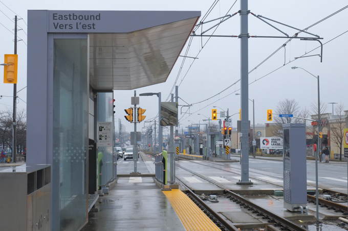 In a lot of ways, the tracks running down the middle of Eglinton Avenue create a wall, especially for pedestrians. For better or worse though, this section of Eglinton has never been pedestrian friendly. It has been designed for cars. And that’s probably not going to change in the near future.