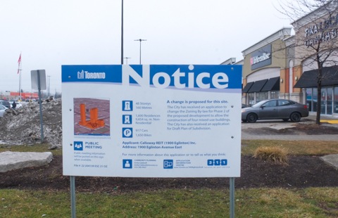 below: 1900 Eglinton East – From shopping center with lots of parking, to four mixed use buildings up to 48 storeys high. Will the slow down in the condo market affect this? If you are interested in this, it is application number 19208733ESC21OZ and the link takes you to the relevant City of Toronto webpage (Good luck!).