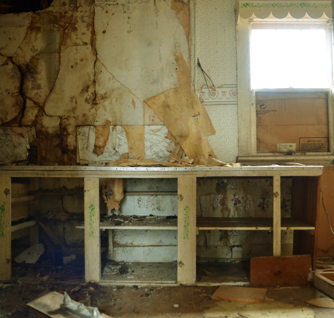 not to mention filthy and disgusting. It looks like it had once been papered with a lot of different wallpaper odds and ends.