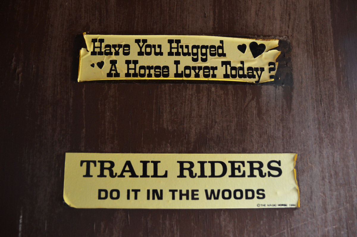 Have hugged a horse lover today? The bottom sticker is © The Magic Horse 1984 which gives some indication of when the building was in use.