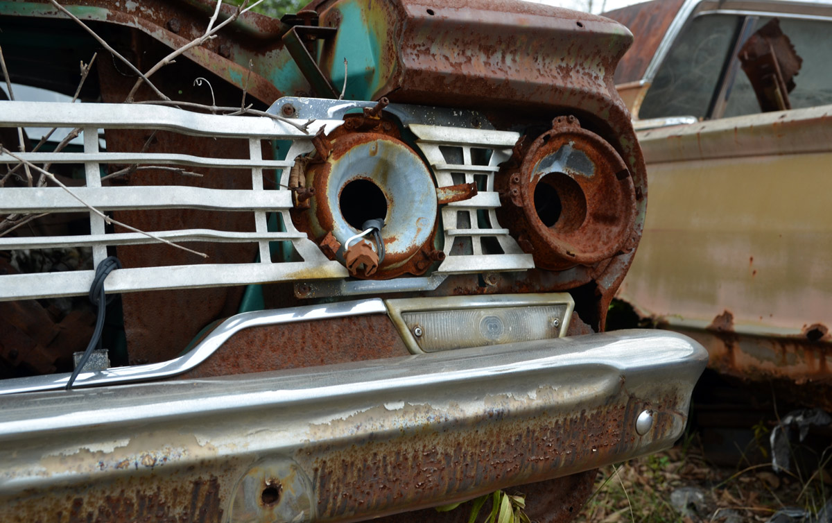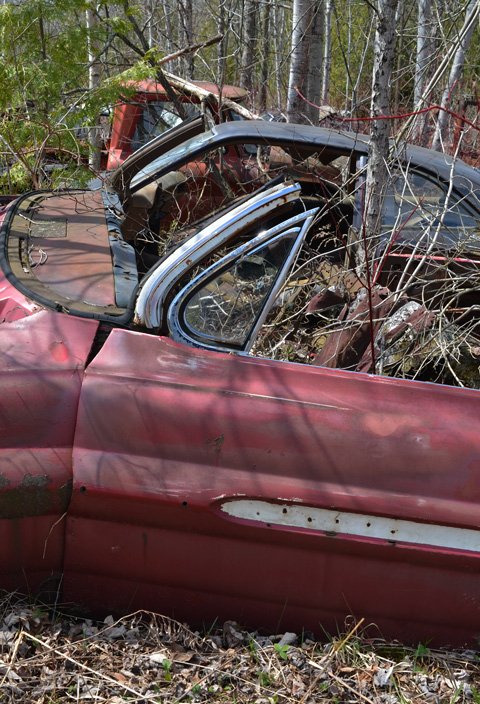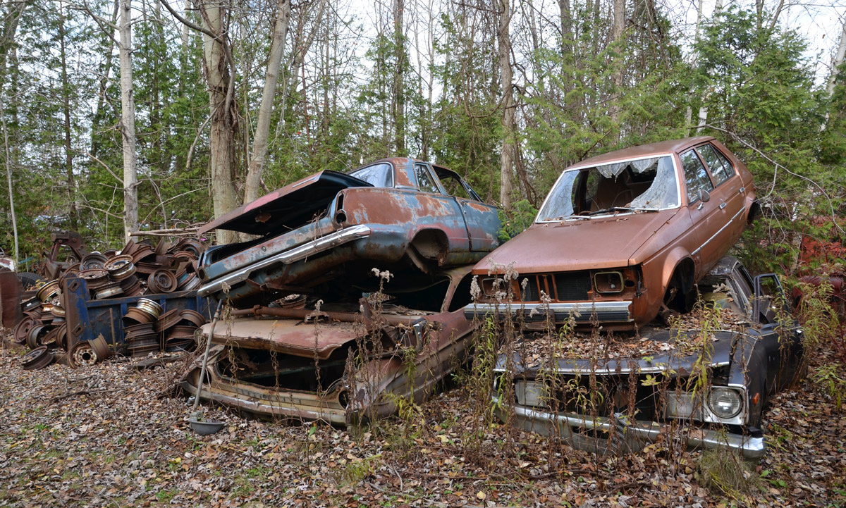 Old cars, junked and rusted.