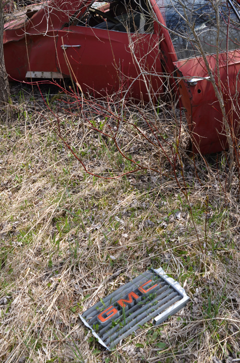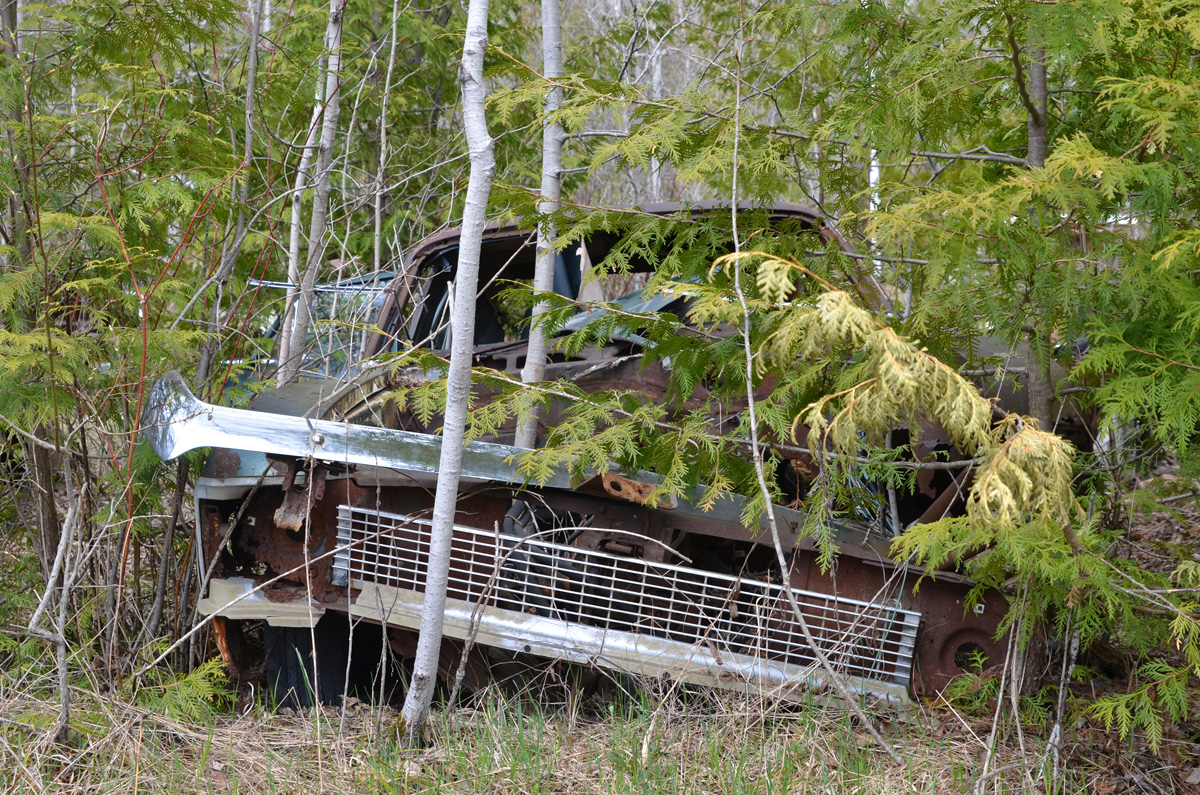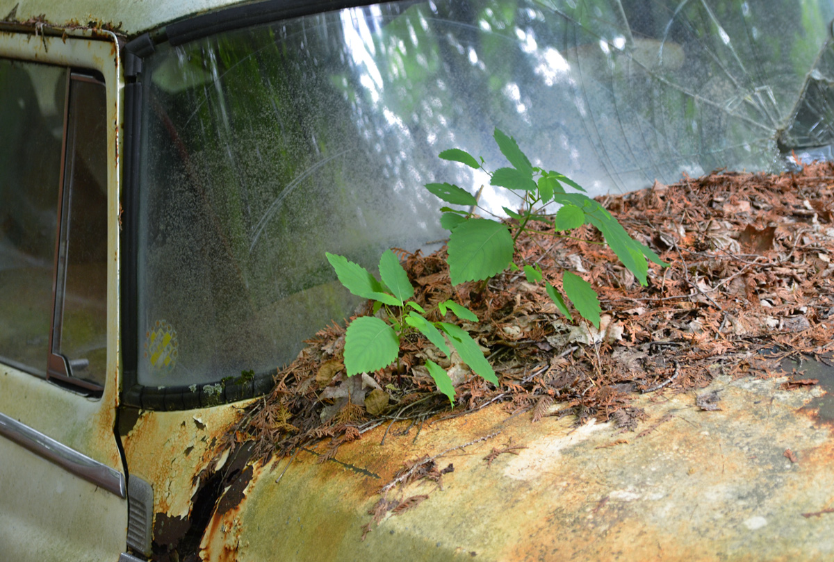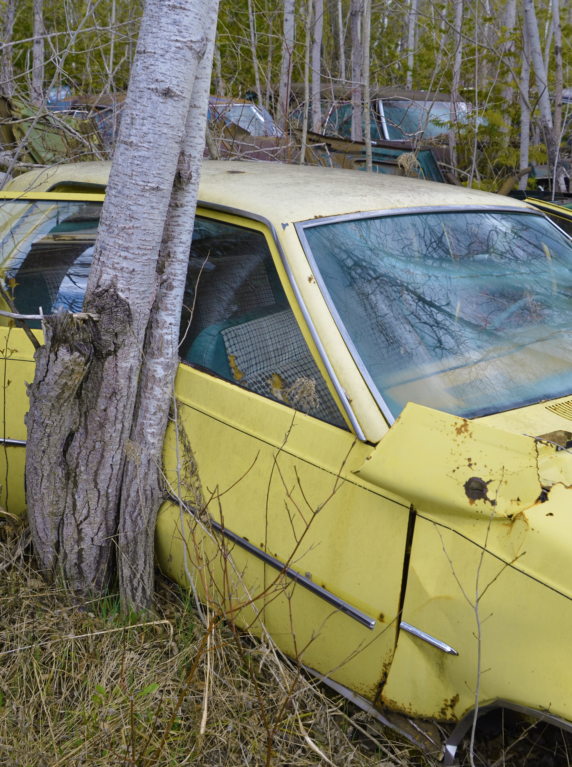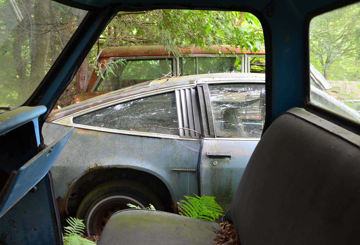 Some of the cars were in fields and were easily accessible. Others were tucked back into the trees. These were probably once in a field too…. but the trees grew up around them!