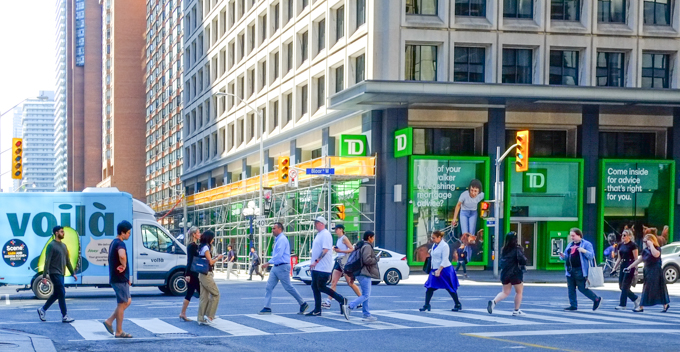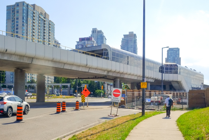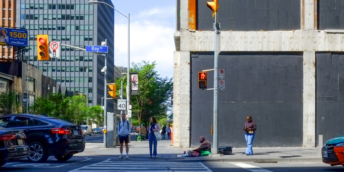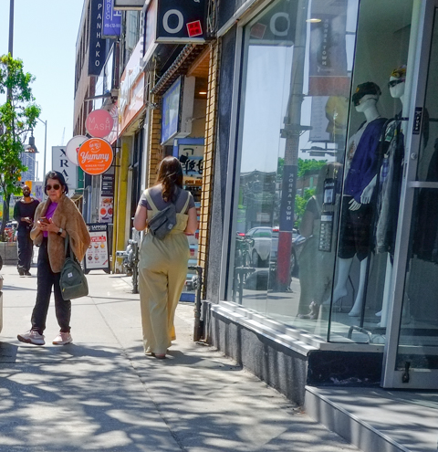 below: Looking east on the north side of St. Clair, from Bathurst. St. Clair West subway station is just a few meters away.