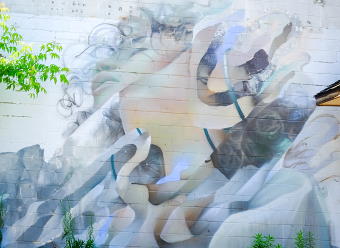 below: There is also this mural, just around the corner on Albany, “You are not alone”. It was painted by Julia Prajza and Bareket (bkez). ‘You Are Not Alone Murals’ is a public mural project with over 100 murals completed. Their goal is to “inspire artists to create murals in their communities–sparking hope, connection, and conversations about mental health.” (quote taken from their website, youarenotalonemurals.com).