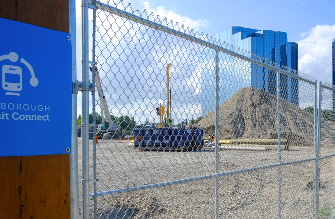 below: There was once a gas station on the northeast corner of Bathurst and St. Clair West. Now it is a vacant lot with a few alien creatures like this one lurking about.
