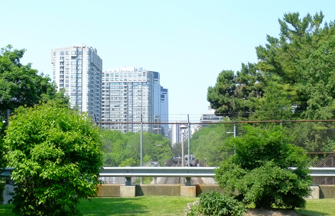 below: Casa Loma in the distance, on the hill beyond the tracks. This is the view on Spadina north of Dupont.