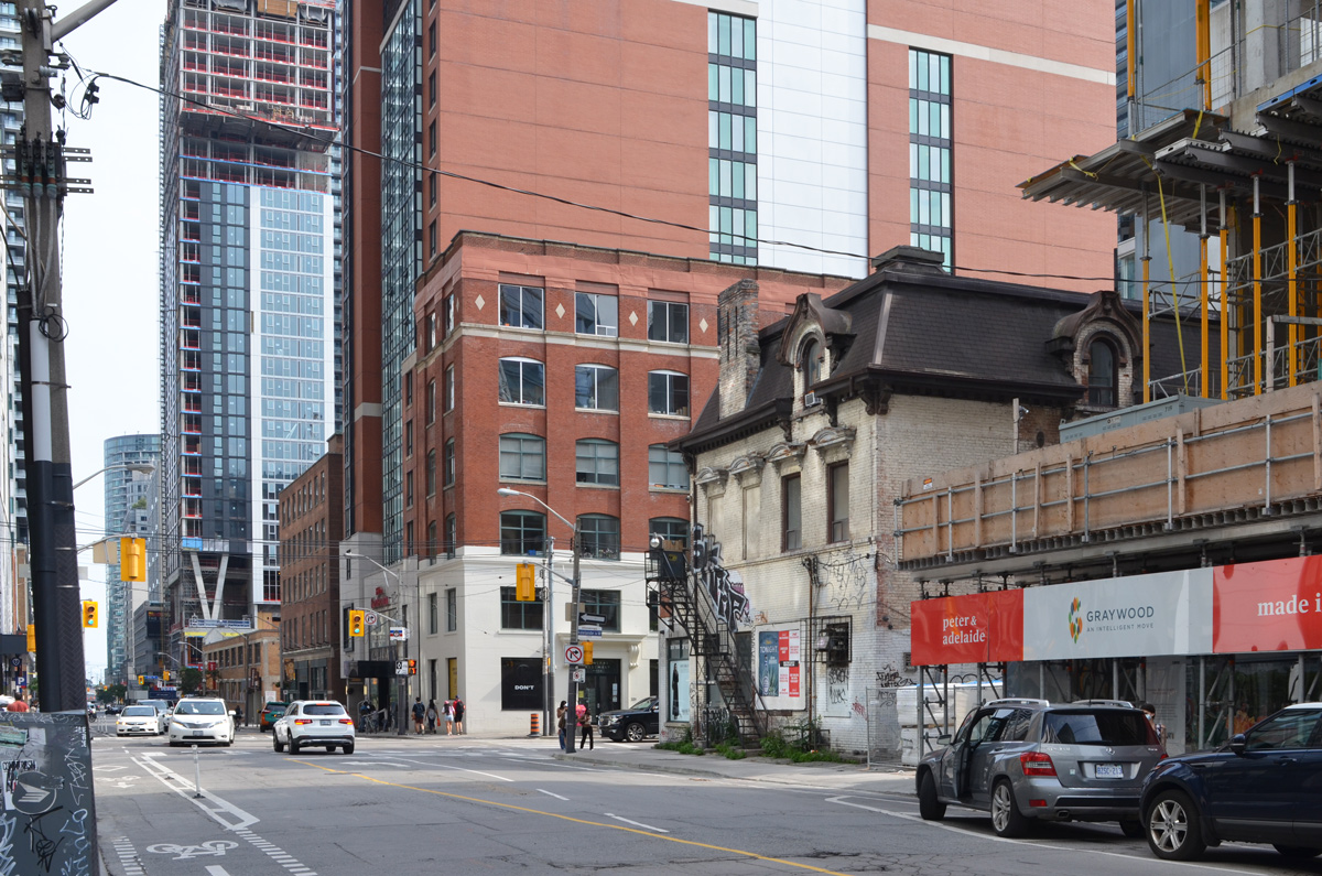 below: Looking north up Broadview at Thompson street, just north of Queen.