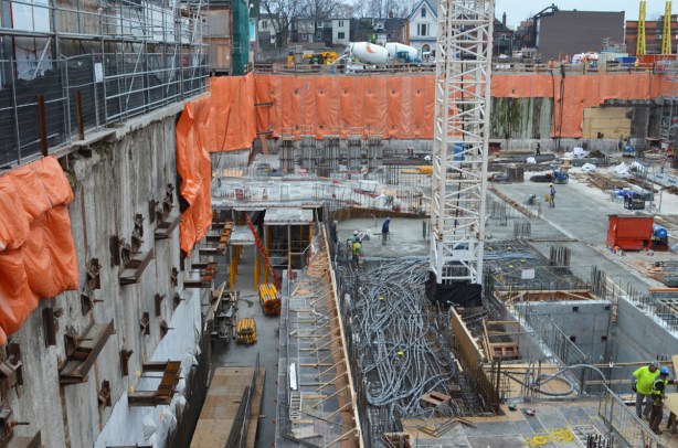 below: By Bathurst street the Korean restaurants have disappeared.  Once upon a time (it seems so long ago!) Honest Ed’s dominated the SW corner of Bloor and Bathurst.  Now there is just hole there, and a very big hole at that.