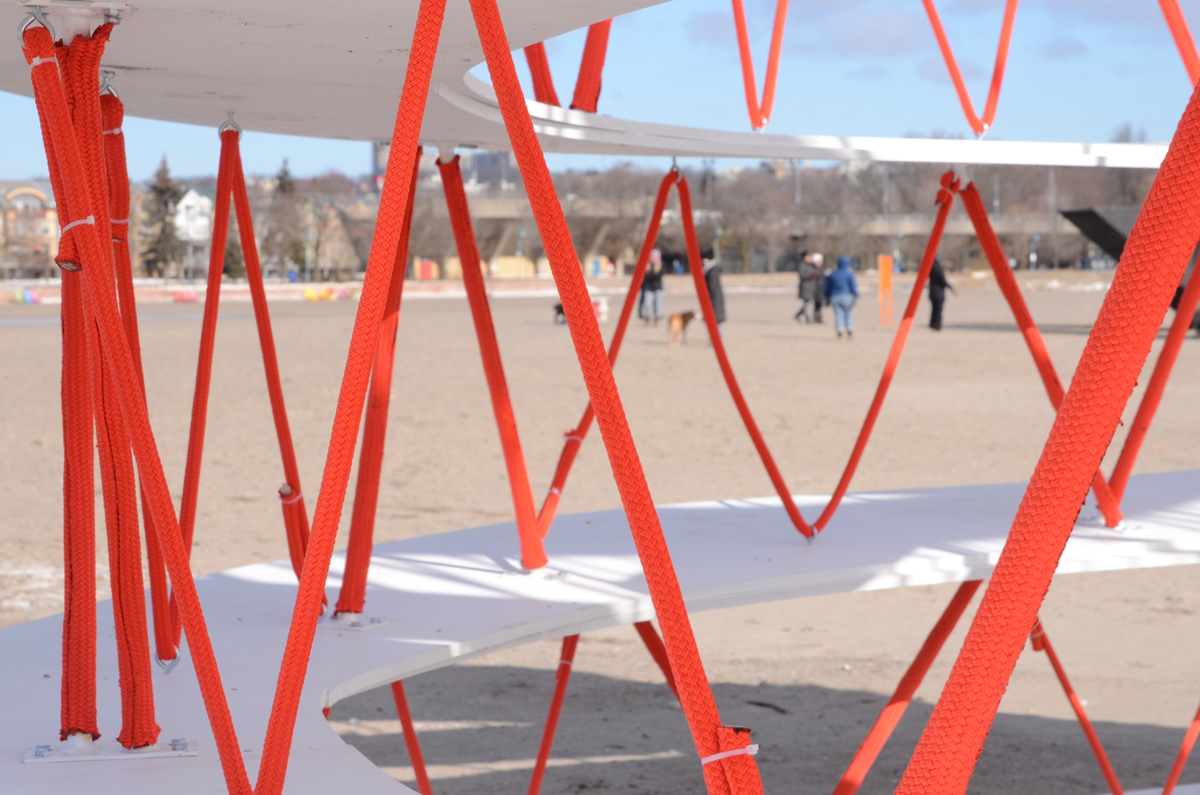 below: In Sir John A. Macdonald Plaza (that’s the space in front of Union Station by Front Street) is an art installation by Masai Ujiri, “Humanity Movement”. There are 35 words that represent what humanity means to Ujiri – words such as compassion, love, selfless, collective that are repeated as they cover the eight foot high installation. A light in the center makes the words appear on the sidewalk and on the structures (and people) around it.