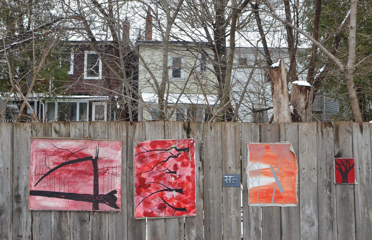 below: A number of these little paste-ups (the guy in the yellow frame) by t-bonez have sprung up around downtown. This one is on Augusta.
