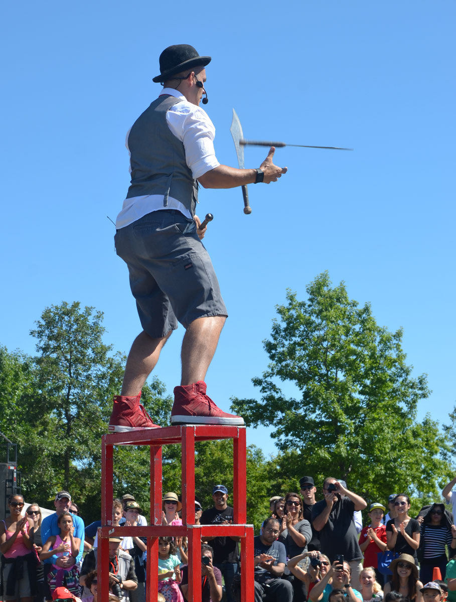 below: One of many shows with balancing and juggling, Kobbler Jay and his three knives.