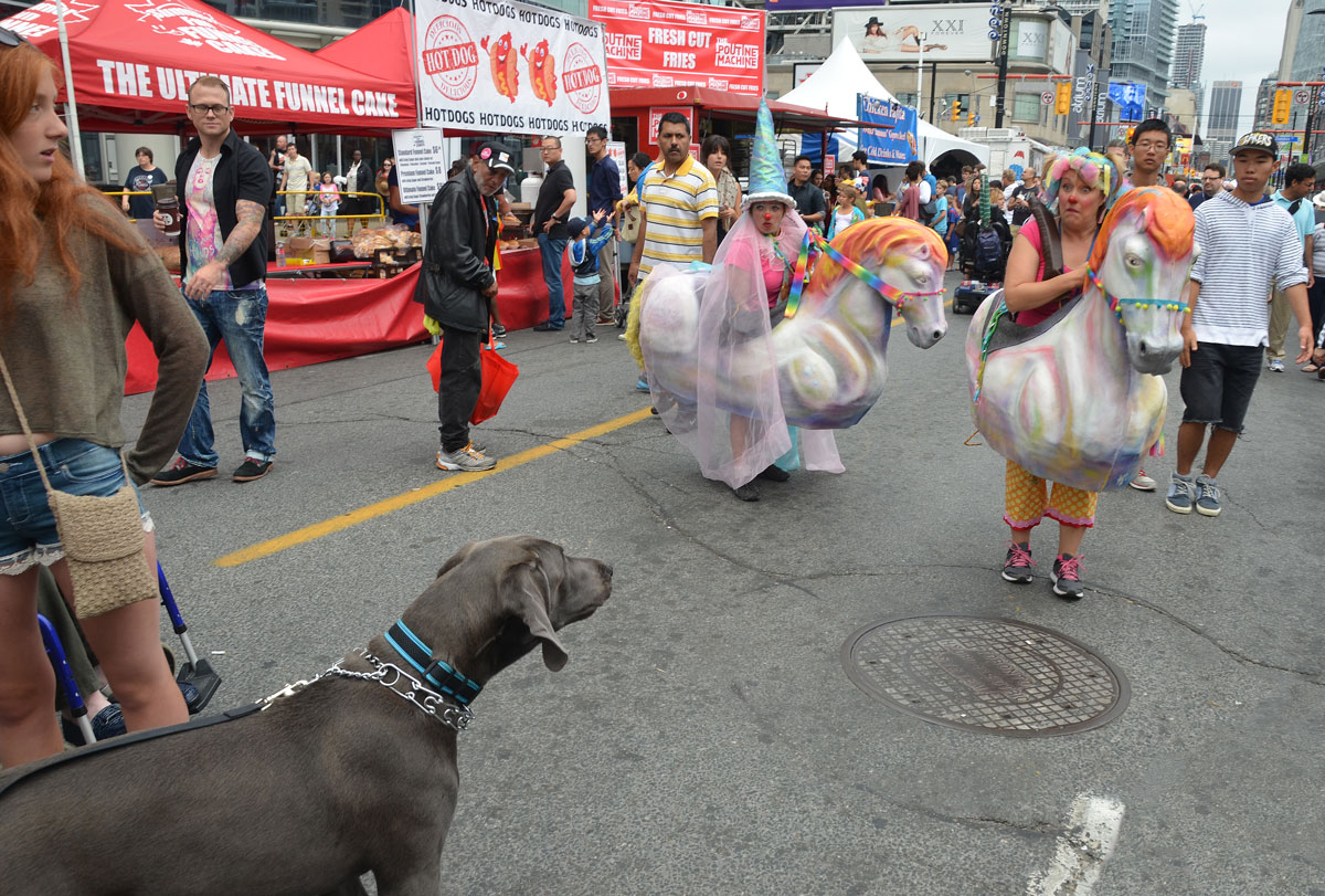 Yonge Street on the Saturday afternoon of Buskerfest, looking north from Dundas Street