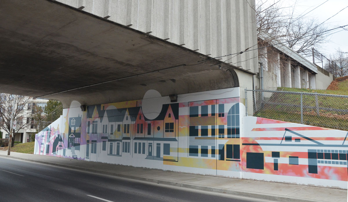 below: Not a heritage mural, but painted by Moises Frank for a collaborative project between Arts Etobicoke and the City of Toronto, the Dundas West #NoVacancy project.