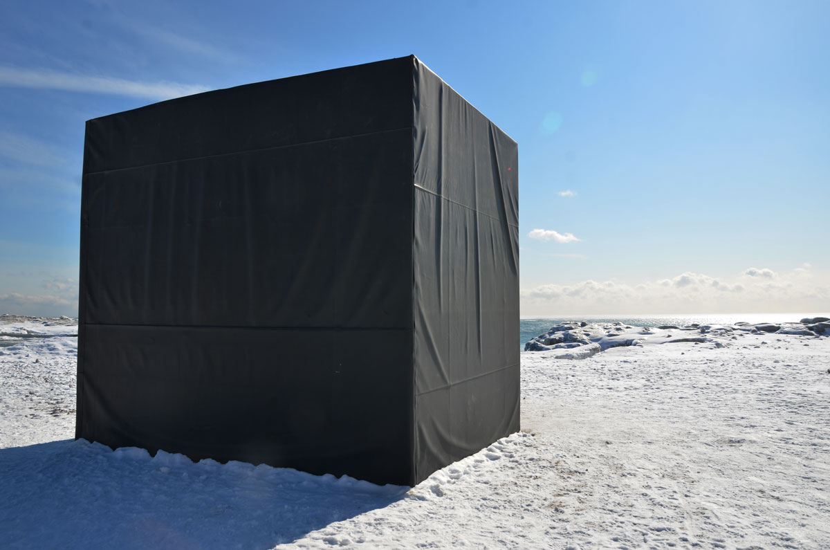 below: The mood and atmosphere of the beach changes as it gets dark outside. The light shining on the Muskoka chairs highlights the pink and green colours and almost makes the chairs look translucent.