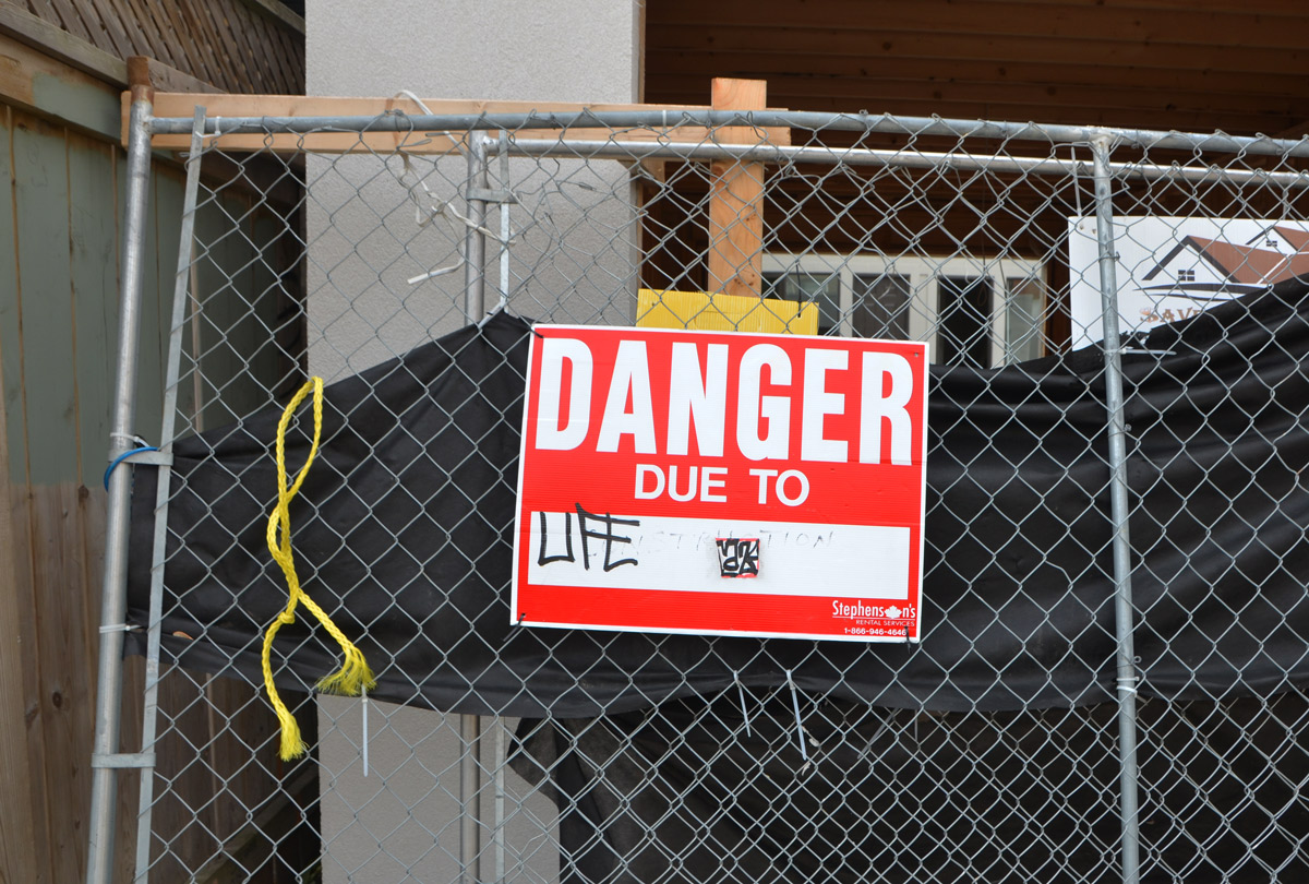 below: Graffiti stickers on a TTC No Dumping sign.