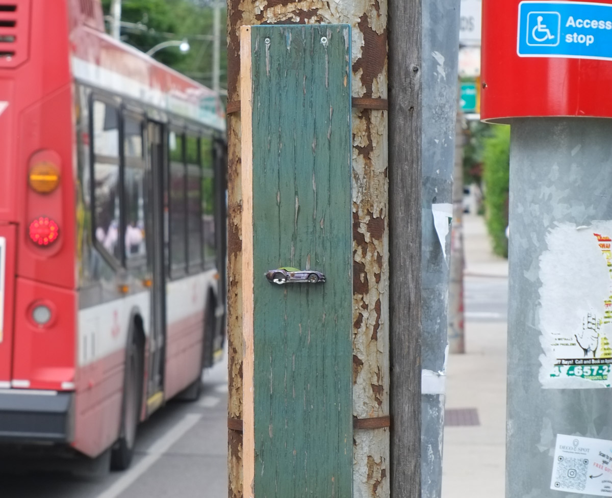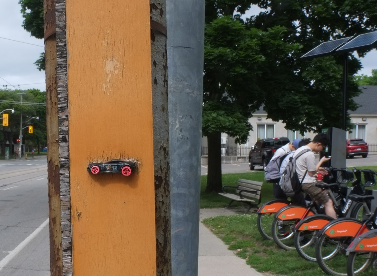 below: Miniature racer, art on a pole by Joseph Lammirato.