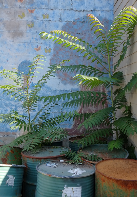 below: Remnants of an art project left to weather on a fence around a schoolyard.
