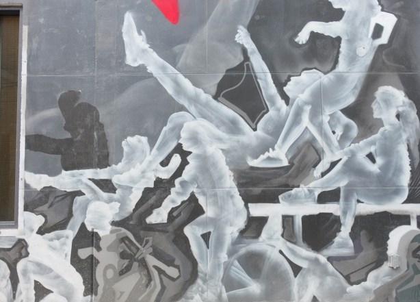 below: At the end of the lane I spotted this too…. can you see the LOVE? It looks like it’s written in the middle of the pink and blue graffiti but it’s actually on the metal vent.