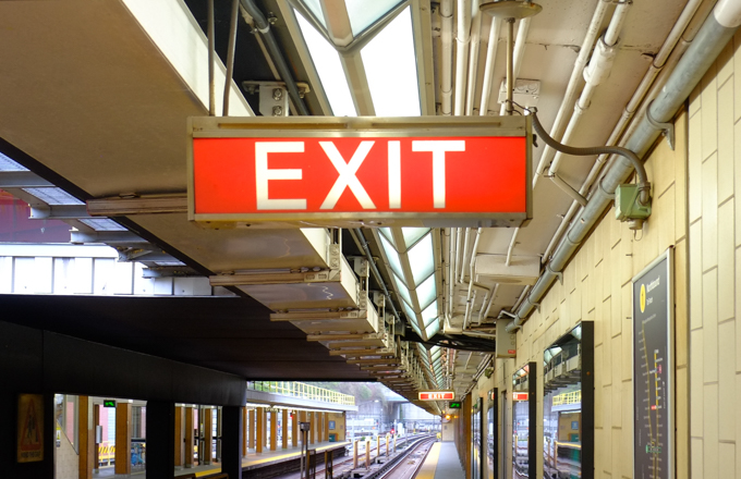 Two images by Laure Tiberghein, behind glass, by exit from Davisville station platform