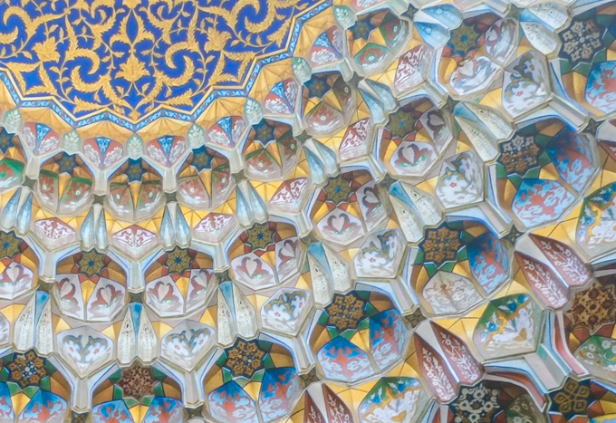 reflective picture in reds and blues on wall of davisville subway station, images by Laure Tiberghien