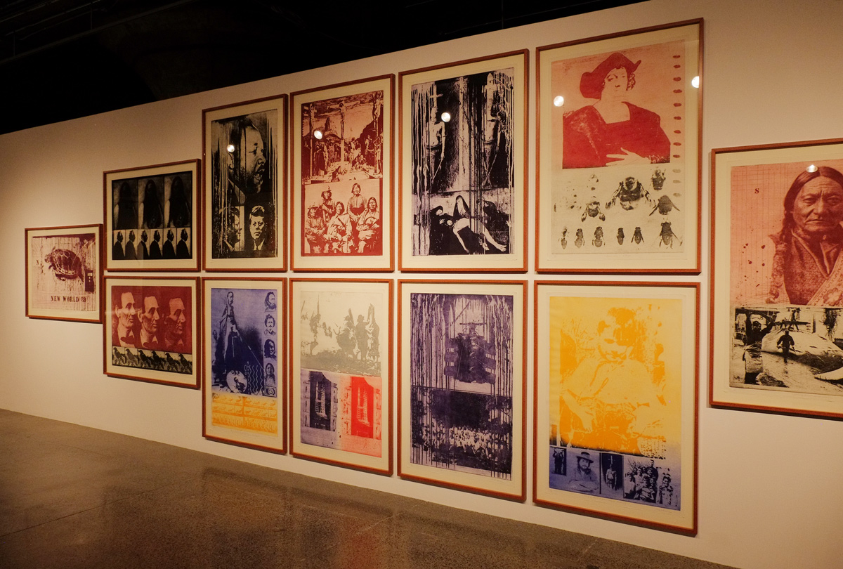 The whole series consists of twelve etchings starting with ‘New World’ (a turtle, representing North America) on the far left. Ten of the remaining etchings features a portrait of a well known person who was persecuted, assassinated, or similar including Jesus Christ, Louis Riel, Abraham Lincoln, Martin Luther King, John Kennedy and Sitting Bull at the far right. The remaining image is composed of four pictures of the artist at various stages of his life; it’s title is: “Self-Portrait as John Wayne, Probably”.