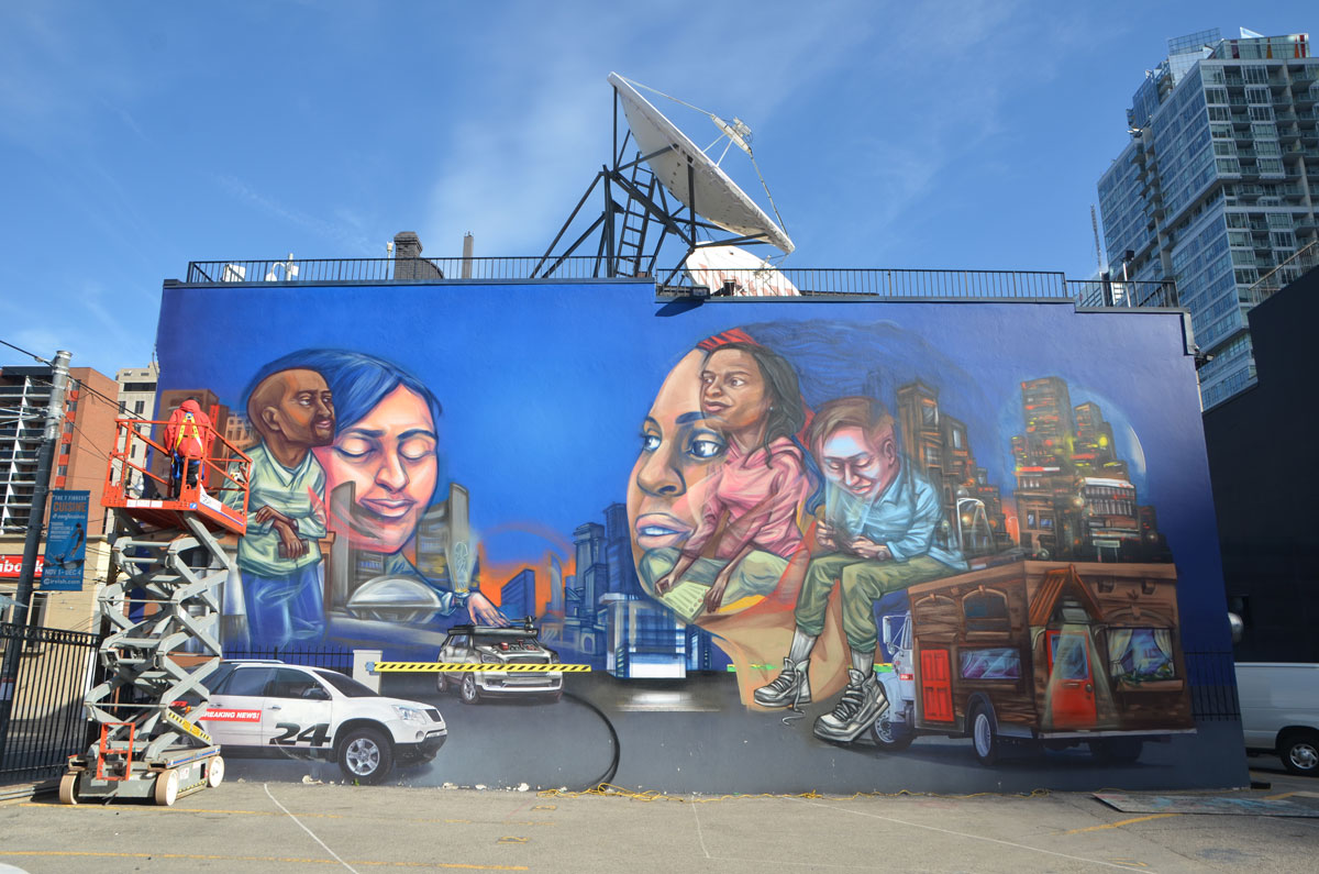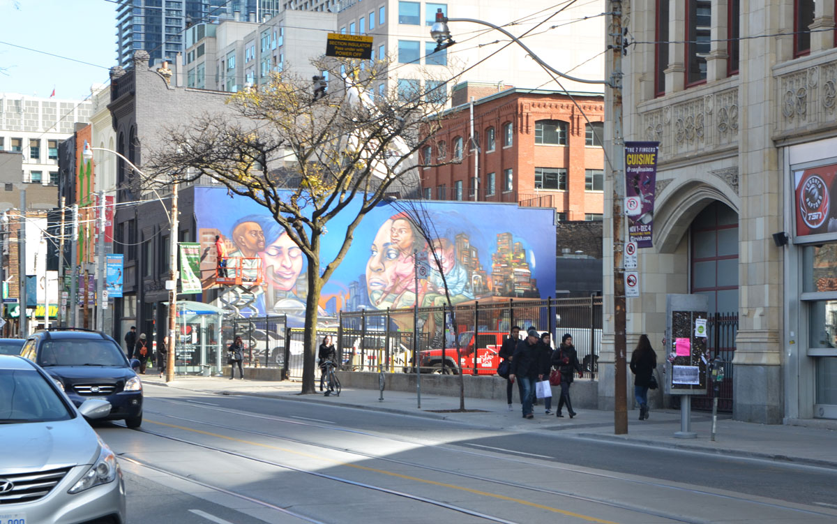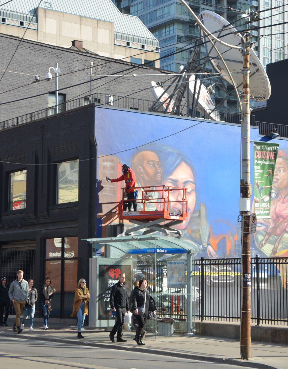 below: Mayoral candidate, Jennifer Keesmaat, walked in the parade with the IATSE locals. At Bathurst St., the groups at the front slowed down to let the others catch up. At that point, Keesmaat was interviewed by CP24.