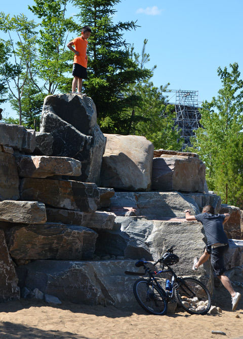 It is one of 100 installations that Chambers is doing across the country for Hope And Healing Canada. The red yard connects the elements and is a reminder that we are all connected too.
