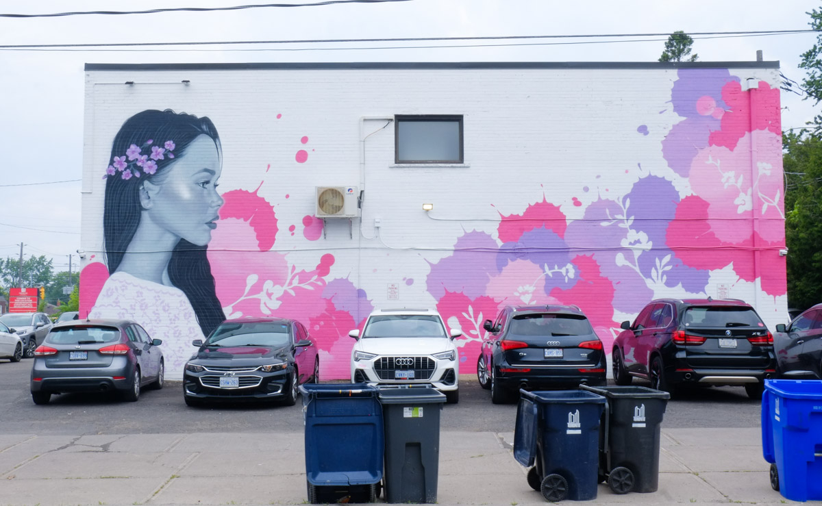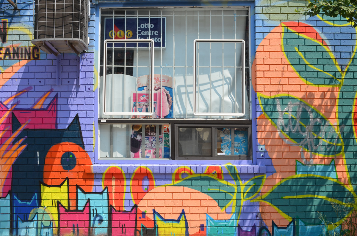 below: Leslieville mural painted by Elicser Elliott, Queen Street East