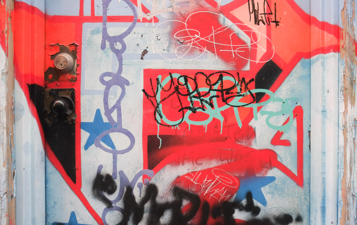 below: Hebrew letters, part of a project called “Welcome Back to Main Street” from back in 2021. The Riverside Neighbourhood and Leslieville BIA collaborated with STEPS Public Art as part of the I HeART Main Street Challenge. The painting was done by local artists Bareket and Curtia Wright