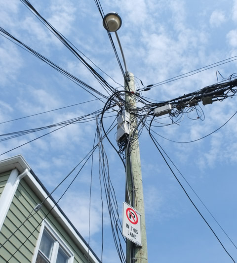 below: Note the many hydro meters all in a row – six units in what was once a single family home.