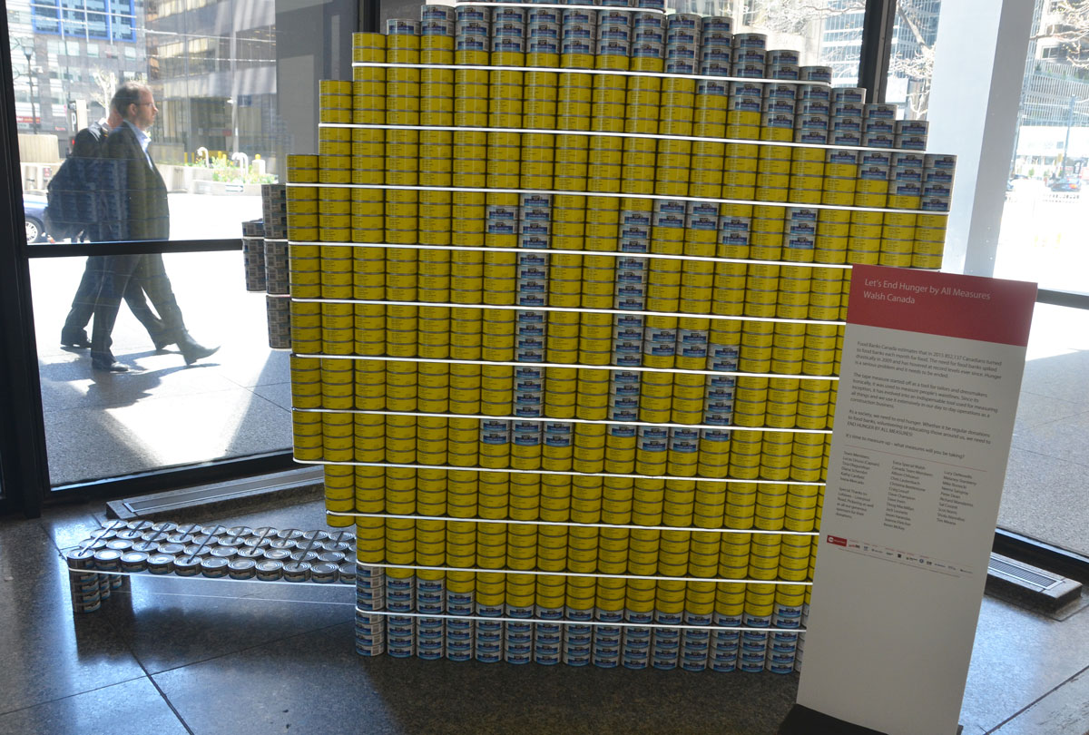 below: ‘Let’s End Hunger by All Measures’ by Walsh Canada. “Food Banks Canada estimates that in 2015 852,137 Canadians turned to food banks each month for food. The need for food banks spiked in 2009 and has hovered at record levels ever since.”