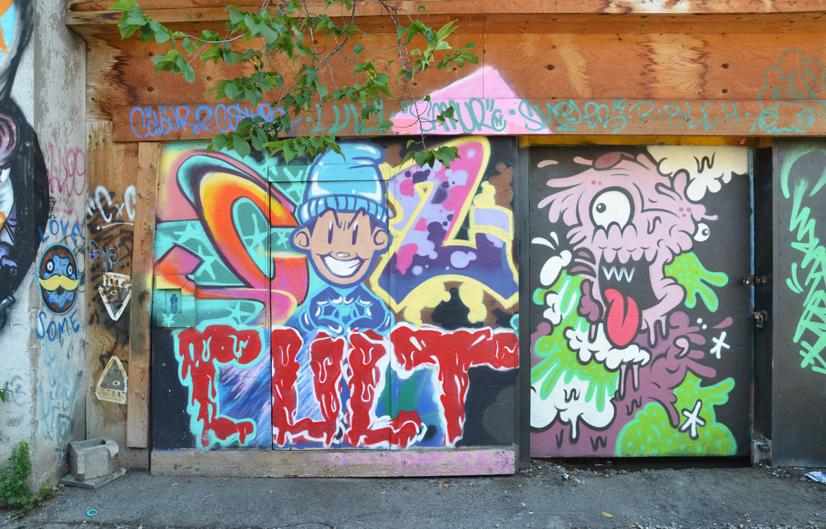 A group of StART artists provided artwork for the mural – I haven’t been able to match all the artists to the sections (and I missed a panel or two?) As well as the artists named above, the following were also involved in this project: Artists: Adrian Hayles, Annwin Arts, Fatspatrol, Brian Jiang, Jasmin Pannu, Keitha Keeshig Tobias, Megan Oldhues, Melika Saeeda, Poser.