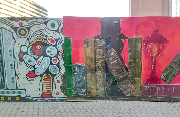 Some of the concrete in this area is slated for refurbishment so the affected pillars have been left clear for the moment.