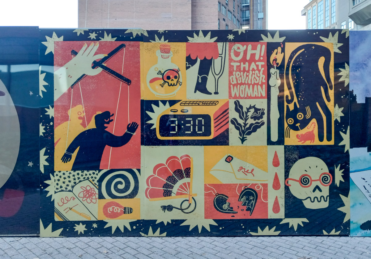The first painting was done as part of an Art Spin event at the end of August. Art Spin is a group that runs bicycle-led events/tours of art a few times a year. The project is also a part of the STEPS Initiative that promotes public art in the city.