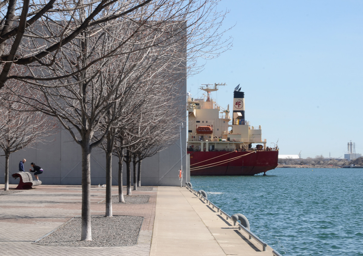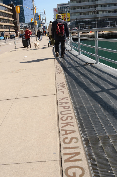 below: Cut into the back of this bench are the words “Is it not the reason we are here”. This bench was designed by Jose Andres Mora was part of the Liberty Village BIA Artist Bench series from 2019. My reason? … Well, I was only passing by because it was a convenient place to have a cup of coffee before walking towards Ontario Place.