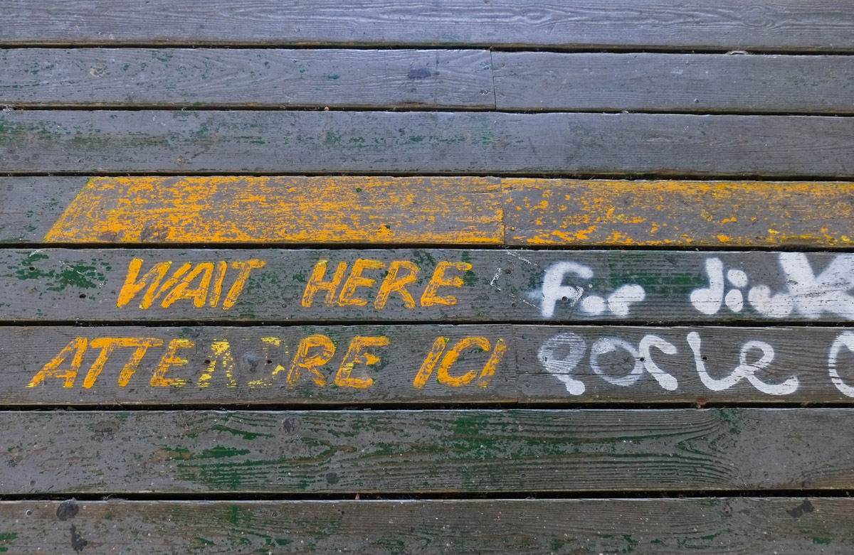 below: Yellow lines to stand behind while you waited your turn for a ride.